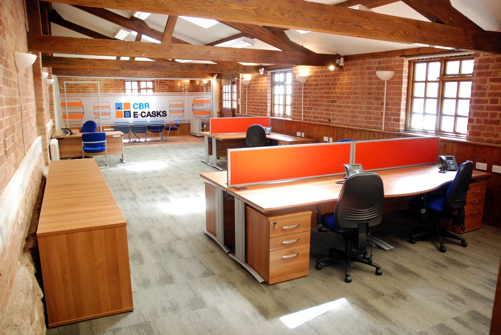 The project entailed the creation of office space and kitchen facilities in a converted barn building for beer cask distributor E-Casks at their premises in Ledbury, Herefordshire.