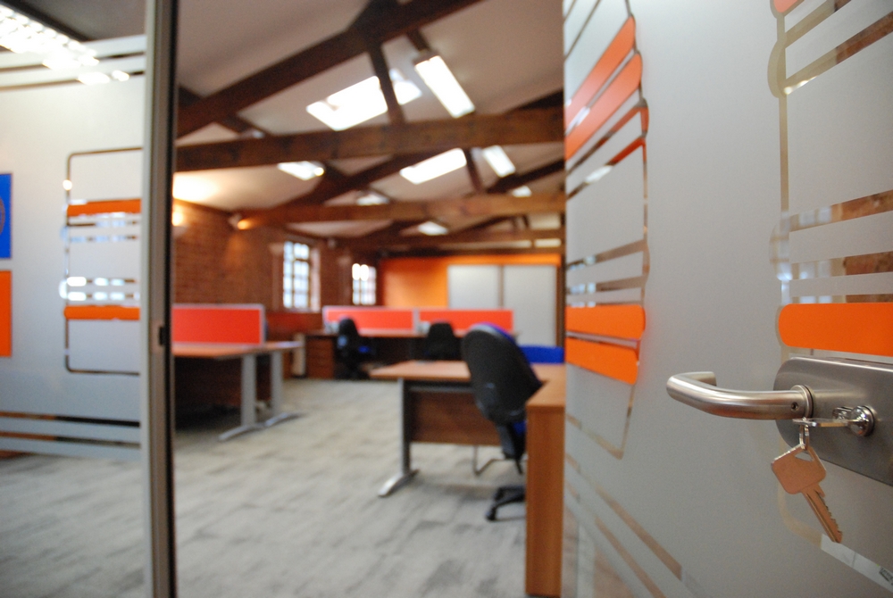 The main body of the building was split into two areas, via the use of glass partitioning complete with branded manifestation, to create a meeting room at one end with the bulk of the space used as an open office with multiple workstations. A fitted kitchen was also installed in a side room.